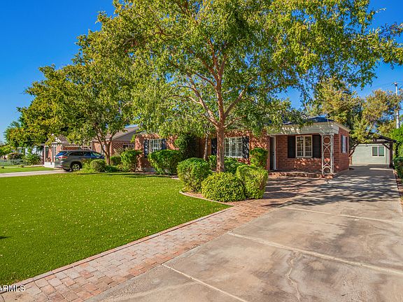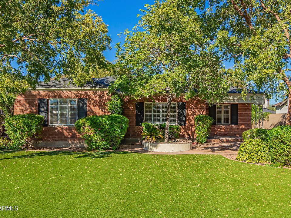 Charming 1940's brick ranch home in Willo historic district. Single family home with 3 bedrooms, 2 baths plus a separate casita with Living room, kitchen, 1 bedroom and bath. Main house has stained concrete floor, vintage cabinets in kitchen, vintage bathrooms. 3rd bedroom has built in shelves stacked washer/dryer. Casita is newer , bright kitchen w/ island, staked w/d unit. Gorgeous yard with artificial turf. lots of mature trees. 1 carport plus parking on driveway.