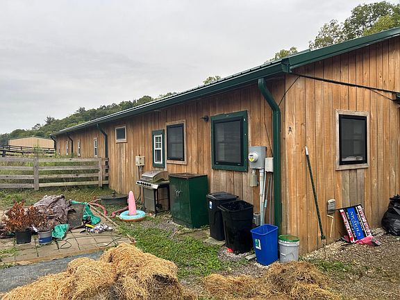Small horse farm, Equestrian Training faculty , has one 11 stall barn with new unfinished, apartment, 2 B/R, 2 Bath, Family room area, Barndominium , apartment added since purchase , not completed. Has a 55 x 120 indoor riding arena, 3 paddocks, Selling as is offers welcome, needs work to finish apartment , clean out barns, repair fences, Buyers and agents to satisfy any and all aspects of property for self.