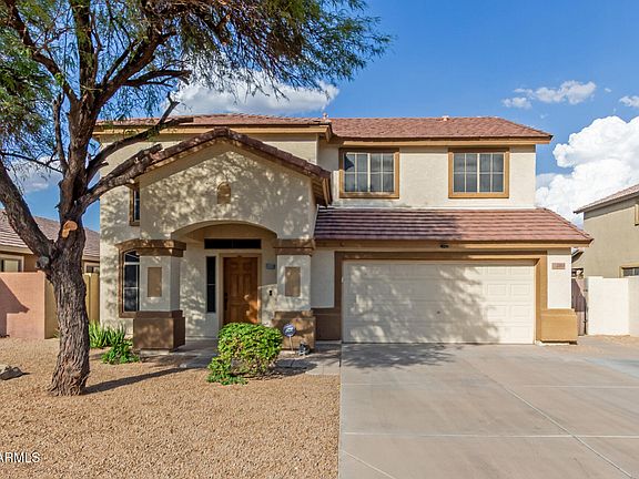 Remarkable two-story home with POOL in San Tan Ranch! Offering 4 beds, 2.5 baths, & a 2-car garage. Discover a formal living & dining room, made airy by the high-vaulted ceiling! The welcoming family room opens to the kitchen, allowing a greater traffic flow. Tons of natural light, two-tone paint, and tile & carpet t/out are some features that make up the inviting interior. The kitchen has built-in appliances and ample cabinet & counter space. One bedroom downstairs with sliding doors to the back. Head upstairs to find the other bedrooms, along with a versatile loft! The main bedroom boasts an ensuite with dual sinks & a separate tub/shower. If entertaining is on your mind, the spacious backyard awaits! An extended covered patio, lush lawn, & a private pool complete the picture. Just WOW!