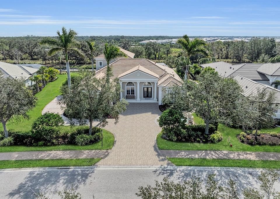 Magnificent custom residence in Sarasota's beloved Founders Club neighborhood. The Founders Club is a 24/7 guard-gated enclave of only 262 homes with over 700 acres of preserve. The prime location is in desirable flood zone X and central to downtown Sarasota and Lakewood Ranch's parks, farmer's markets, and polo fields. Golfers will appreciate the optional membership to one of the region's finest courses. The Robert Trent Jones Jr. course offers easy tee times and is one of the only walkable courses in the region. With over $800K in recent renovations, this home is move-in ready and perfect for the next generation to cherish. Built on nearly half an acre and set against the backdrop of a tranquil preserve of protected ancient oaks for immense privacy. The wraparound drive leads to an oversized 3-car garage, and the double front entry and low-country style porch welcomes you home. Step inside to discover luxurious open spaces perfect for entertaining and relaxing and serene views of nature. Quality craftsmanship is evident in custom trim work, 10-foot sliding glass doors, multiple fireplaces, and refined architectural elements. The library, with built-ins, a sitting area, and a porch, is ideal for working from home. The stunning new traditional ambiance was carefully curated with a palate of timeless selections. The airy ambiance is charming, coastal, and casually elegant. The new primary suite boasts French Oak wood floors, double walk-in closets with custom shelving, French door access to the outdoors, and a lavish bathroom with dual vanities, a soaking tub, and a walk-through shower. The kitchen combines beauty and functionality with state-of-the-art appliances, furniture-quality cabinetry, and Taj Mahal natural quartzite countertops. A pass-through window, butler’s pantry, and built-in wine fridge facilitate hosting. Natural limestone travertine floors, designer lighting, soft neutral paint colors, and built-in closets enhance the home. The whole home water filtration system and generator provide peace of mind. Spacious guest corridors feature wood floors and private bathroom access. The sunlit guest loft, accessible by elevator or staircase, offers majestic views, a balcony, kitchenette, and another king guest suite with a walk-in closet. The new outdoor area rivals a resort and features a heated saltwater pool, spa, outdoor kitchen, and fireplace—perfect for gatherings or peaceful evenings. Optional golf and/or social memberships provide access to the clubhouse, restaurant, fitness facilities, and har-tru tennis courts. Convenient access to downtown cultural venues, beaches, parks, grocers, farmers markets, and restaurants. Residents appreciate the privacy, natural beauty, and welcoming atmosphere of The Founders Club. Available by private appointment for qualified buyers. Come see this exceptional opportunity.