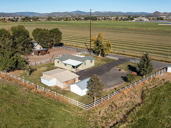 Rare opportunity! Peaceful country living w/ irrigation rights & horse amenities. Escape to this charming 2 bed, 1 bath home w/ bonus room, nestled on 6.6 acres w/ valuable irrigation rights, surrounded by mature trees & amazing views. Whether you're looking for a hobby farm, horse, cattle, or alpaca property, or a quiet rural retreat, this one checks all the boxes. Enjoy easy flood irrigation that keeps the entire pasture lush & green, perfect for grazing or gardening. Land is fully fenced, complete w/ large workshop, corral, stable w/ 2 stalls, & hay storage. The home features covered front porch w/ beautiful views of surrounding farmland, ideal for morning coffee or sunset unwinding. Inside, the layout offers cozy living spaces & versatile bonus room. Large workshop provides ample space for tools, projects, or storage, making this property as practical as it is peaceful- & even comes w/ a riding mower! Located in a quiet rural setting w/ room to roam.