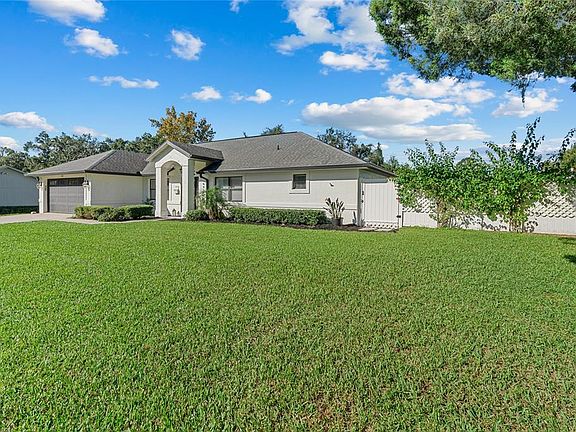 Come enjoy this move-in ready pool home that has been meticulously maintained and has many upgrades. Newer Roof 2018, Newer HVAC 2021, Hot Water Heater 2022. Relax, listen to music or watch TV and enjoy the sunsets the from covered and screened lanai/pool area. In the cooler months, convert the lanai to a second living room by pulling the blinds and turning on an outdoor fireplace. The salt water pool is great for swimming laps, it's solar heated, and has smart lighting that can change colors with the seasons. Get creative in your new greenhouse and outdoor exercise area. Have pets? We have you covered. There are two doggie doors to the fenced in backyard with an additional invisible fence that extends all the way around the front yard. 2 collars with transponders are included! Love to cook? The kitchen has lots of counter space, newer stainless-steel appliances, and a walk-in pantry. The oven can be converted to double oven with 2 temps at the same time. There is a nice area in the kitchen for seating and a separate dining room. Work from Home? This home has a split floor plan with the primary bedroom and office/flex room on one side and the guest bedrooms on the other side. The guest bath doubles as a pool bath with a door to the outside. The flex room is close to primary ensuite and the kitchen. All the bedrooms are of ample size and each room has a walk-in closet! The home has many smart features including the garage door, some light switches and plugs, and the alarm system is both monitored and the cameras may be viewed from your smart phone. The extra large laundry room has room for a fridge, newer LG washer and dryer, and a utility sink. This home is an opportunity to really enjoy all that Ocala has to offer. Close to WEC, restaurants, medical and downtown.