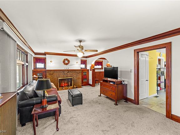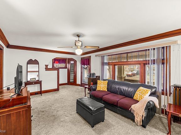 Located in Cleveland's West Boulevard neighborhood, this beautifully maintained Colonial features over 1,500 sq ft of living space with three bedrooms and two full baths. Enter into the spacious living room, which features amazing original woodwork and built-ins, including leaded glass cabinets and unique millwork lighting. Stunning woodwork and more built-ins continue throughout the large dining room, which is the perfect space for hosting dinner parties and holiday gatherings. Off the dining room, a set of French doors open to a bright and cozy sunroom. The spacious eat-in kitchen includes all the appliances, and features plenty of storage and counter space. Upstairs, the primary bedroom is spacious and includes a large closet. Two additional bedrooms and a full bath complete the second level. The lower level features a large rec room area, laundry area, and full bath. Outside, the incredible front porch and rear patio provide plenty of outdoor entertaining space...and don't miss the oversized 2-car detached garage! This property sits a short distance from local parks, shopping, and highway access. Don't miss this opportunity to own this lovely home in an ideal west Cleveland location!