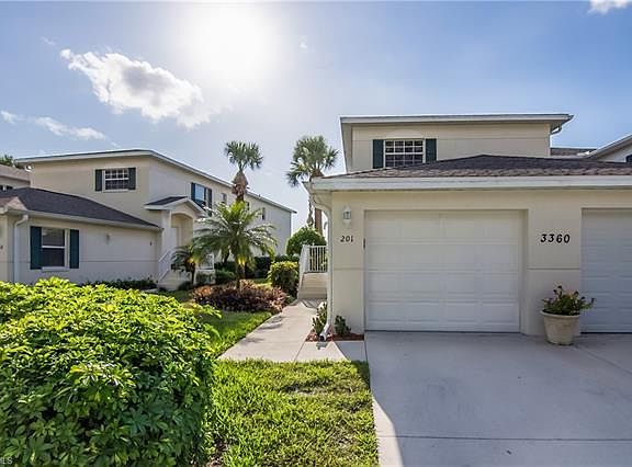 A view to kill for-- tiled, screened lanai overlooks 37 acre lake, and faces west to enjoy spectacular Naples sunsets. This 3BR spacious Coach home is in mint condition, freshly painted. All bedrooms have engineered wood floors. Tile elsewhere. No carpet. Guest bedrooms with Jack & Jill bath. A/C and appliances all about 3 years young. Attached garage. Electric storm shutter on lanai. Guest parking nearby. Clubhouse, pool overlooking the lake, sauna, state-of-the-art fitness center, billiards, community room, tennis courts, pickleball. 3 mile jog/bike path. Canoe or kayak on the lake. Fish for bass. Less than 5 miles to Gulf beaches and 5th Avenue attractions. Minutes to Kings Lake shopping center with Publix, pharmacy, restaurants and salons. Many special touches-- you will have to see to appreciate. Unit is owned by snowbirds-- barely used most of the year. Come see and fall in love!