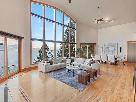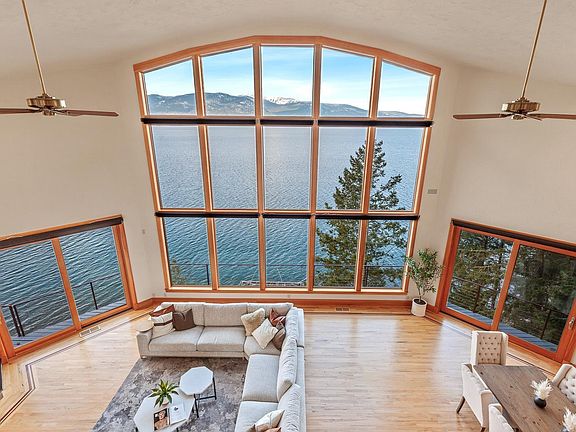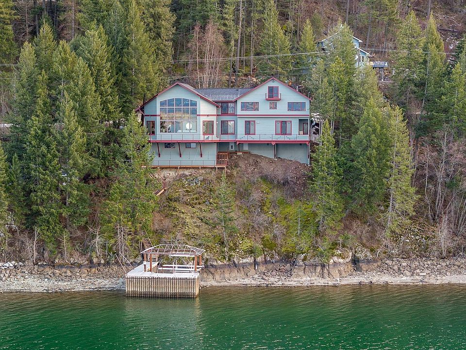 Experience North Idaho lake living at its finest in this custom waterfront home perched above 200 feet of private Lake Pend Oreille frontage, featuring panoramic views of Sandpoint and Schweitzer Mountain Resort. Designed for comfort and privacy, this 3-bedroom home plus den and bonus rooms includes multiple private suites, ideal for guests or multi-generational living. Nearly every room captures lake views, natural light, and soaring ceilings. The main level offers hardwood floors, a spacious living room with a wall of windows, and a gourmet kitchen with granite countertops, pantry, and wet bar-perfect for entertaining. The primary suite is a true retreat with dual walk-in closets, jetted tub, separate shower, and an attached office or exercise room with deck access. Outdoor living shines with expansive decks, mature landscaping, a private dock, and covered boat lift, all just minutes from downtown Sandpoint. A rare opportunity for year-round living, vacation use, or investment.