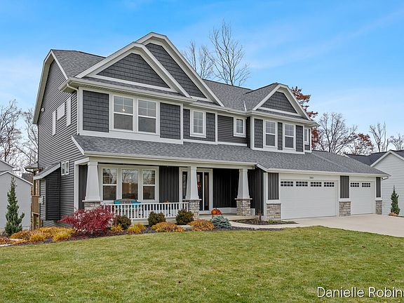Thoughtfully finished and better than new, this 2022 Roersma & Wurn two-story home in Eagles Ridge welcomes you with bright, open spaces & a layout that feels instantly welcoming. The main level opens with large windows, a gas fireplace, and a bright quartz kitchen designed for effortless daily living—complete with a center island, pantry, and easy flow to the covered deck. It's a comfortable spot for slow mornings or evening conversations. A mudroom with custom lockers & a half bath add everyday convenience. Upstairs, the primary suite feels elevated with vaulted ceilings, double closets, and a spacious bath, while three additional bedrooms with nearby laundry complete a well-designed upper level. The finished walkout lower level & a second living area, full bath, & an additional bedroom—ideal for guests, work, or hobbies. With professional landscaping, a firepit, wooded views, & a 3-stall garage, this Hudsonville Schools home blends comfort, style, and ease in all the right places.