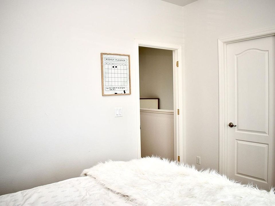 Step inside to a welcoming first floor, where the open-concept living room flows seamlessly into a dining nook and a stylish kitchen featuring quartz countertops, stainless steel appliances, a gas stove, and a breakfast bar. Upstairs, the spacious master suite boasts a large walk-in closet with built-in storage, a dual vanity with granite countertop, a separate bathtub and shower, and a relaxing balcony with stunning views of the Sierra Mountains.