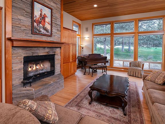 Stunning Norman-built home located in the prestigious gated community of Awbrey Glen, overlooking the 17th fairway. The great room features floor-to-ceiling windows, a stone-surrounded gas fireplace, oak hardwood floors & beautiful golf course views. A gourmet kitchen w/ Chef Grade Thermador stove, Sub-Zero refrigerator, built in wine fridge, & a generous sized island. The primary suite includes a cozy fireplace, a newly remodeled bathroom with a soaking tub, & limestone flooring. Hunter Douglas window coverings & cherry wood-framed windows add elegance throughout. Two guest bedrooms & a loft are upstairs for additional space. Enjoy outdoor living on the spacious mahogany deck, complete w/ a gas fire pit, timed heaters, & planter boxes. The three-car garage offers extensive built-in cabinetry & a workbench. This home combines luxury &comfort in one of Bend's most sought-after golf communities. 3 bedrooms and 2 Full bathrooms 2 1/2 Baths. Air conditioning. Tenant to maintain landscape.