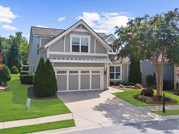 Located in the 55+ Cresswind at Lake Lanier community, this meticulously maintained residence offers three bedrooms, three bathrooms, and 2,138 square feet of living space, including a second-floor guest suite. The property is within walking distance of amenities such as the community garden, dog park, clubhouse, and more. Interior features include premium LVP flooring, carpeted bedrooms, tiled bathrooms, crown molding, recessed lighting and a 576 square foot covered patio designed for entertaining. The great room provides open-concept living and includes a stylish bar with glass-front cabinetry, back lighting, wine rack, leathered countertop, and glass-tiled backsplash. An expansive sunroom serves as a dining area capable of seating twelve or more guests. The kitchen is equipped with white gourmet cabinets, granite countertops, decorative backsplash, dual built-in ovens, gas cooktop, stainless steel appliances, a large island, an extra cabinet and a spacious pantry. The primary bedroom suite features a tray ceiling, plantation shutters, a spacious walk-in closet, garden tub, walk-in shower, dual vanities, and an integrated speaker system to enjoy your favorite audio programs and music. The second bedroom accommodates a king-size bed and dresser, while the adjacent bathroom provides a tub/shower combination. The main floor laundry room washer and dryer are included. The third bedroom suite, accessed via a frosted glass slider, offers flexibility for use as a bedroom, office, hobby room, or playroom, complemented by a full bath. Two walk-in attic storage spaces are easily accessible. The garage features double side doors for convenient golf cart access. A highlight of the home is the backyard, which boasts an elegant, covered patio with a pitched wood ceiling and Spanish tile flooring. A custom wrap-around bar comfortably seats eight to ten. A kitchen island equipped with a natural gas grill, a two-burner stove, storage cabinets, drawers, and accessible receptacles. An integrated Bluetooth speaker system is installed for entertainment, complemented by a serene fountain that enhances the ambiance of the large, landscaped yard. Major maintenance has been addressed, including exterior painting in 2022, a six-month-old water heater, a one-month-old HVAC system, and a new roof installed in July 2024. Monthly pest control service and a termite bond are in place, ensuring the property is move-in ready. Cresswind at Lake Lanier features a 43,000 square foot, three-story clubhouse with indoor and outdoor pools, kayaking, fishing, courtesy boat docks, over 120 clubs, arts and crafts room, pickleball, tennis, fitness center, dance and fitness classes, poker, games, billiards, performances, chorus, concerts, and dances. An on-site activities director, property manager, and maintenance staff ensure smooth operation of all facilities. Residents are welcoming and actively encourage new neighbors to participate in community activities. As a resident for 12+ years, I know you will love living here!