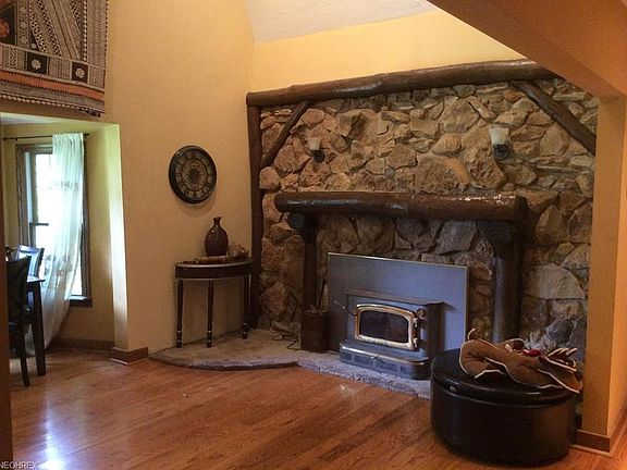 4 Bedroom- 3 Bath home with over 3,000 sq.ft on 1.4 Acres. Large open Great Room & Kitchen with hardwood floors and 2 stone fireplaces. 9ft. kitchen island with wood countertop and sliding glass doors to deck. Spacious master suite with sitting room or office and access to balcony. Master bath with whirlpool tub and skylight. Custom tile in baths and laundry. 1st floor laundry and office. Attached 2 car and detached 2 car garages. New roof on house in June 2016 with new gutters. New well pump in 2014. Secluded wooded lot. Newer blower motor on LL wood burner