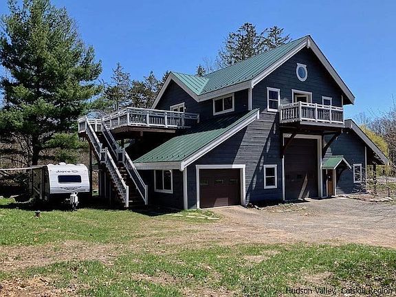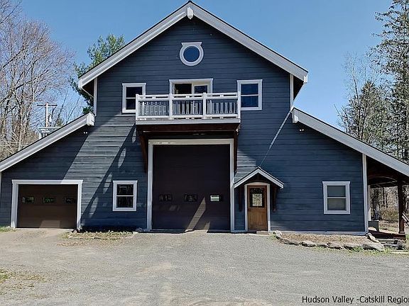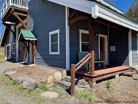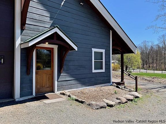 This stunning artisan crafted building offering nothing but options was constructed in 2016 by a father and son team. The son, an accomplished arborist and the father, a renowned furniture maker, together created this extraordinary timber frame building out of timbers, they themselves harvested and milled onsite. From the rough sawn pine support beams to custom built staircase with 2" thick Ash stair treads that ascend from the studio/great room to the second floor 1200 square foot loft living area, this building is an obvious labor of love. Formerly used as the office and shop for the owner's tree service, the ground level 1200 square foot studio/ great room space boast 16’ foot high ceilings with exposed rough sawn pine timbers w/custom black wrought iron mending plates and exposed 4” X 10” pine ceiling joists. The pictures cannot do this building justice, you have to see it to truly appreciate the craftsmanship and soaring ceiling height. The ground floor level also offers an adjacent full tiled bath with zero entry walk-in shower, office and large center anteroom, which could easily become primary bedroom suite and a two car tandem garage on the other side. As if this is not enough, the whole ground floor level is heated with radiant heat embedded in the concrete floor, making heating such a grand space very efficient. The upstairs loft living area features gorgeous 6” flush butt, clear maple floors with a striking vaulted trussed ceiling and large rear deck and Juliet balcony in the front. This area is heated and cooled using high efficiency mini–split heat pumps powered by roof mounted solar array with the benefit of little to no electric costs. The owner just installed a stunning new kitchen with a center Island cook top, sleek black granite counter tops, stainless steel appliances, beautiful self close wood cabinets and custom made black walnut shelving. The building and property are a blank canvasses and could not be constructed today for the asking price. It could be a 2-3 bedroom single-family home with modifications. It could be a live-work space for an artist or crafts person or you could create an additional accessory apartment on the ground level. It’s limited only by your imagination! The 11.5 mile long Ashokan Rail Trail is right across the street, which runs from West Hurley to Boiceville, NY.
