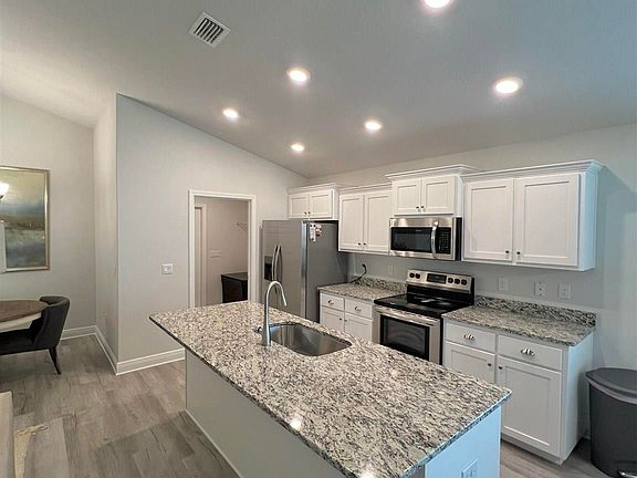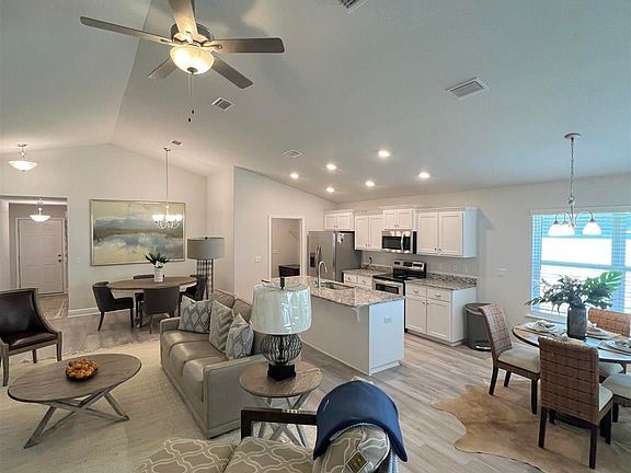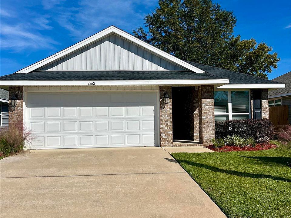 ***MOVE IN READY!!!*** CONVENIENTLY LOCATED TO NAVY FEDERAL, UWF AND ALL THE SHOPPING NEEDED FOR YOUR EVERYDAY NEEDS. THIS 4 SIDES BRICK 1425 PLAN IS A 3 BEDROOM 2 BATH THAT IS SURE TO IMPRESS YOU FROM THE TIME YOU ENTER INTO THE HOME THROUGH THE FOYER. THE ENTIRE HOME HAS LUXURY VINYL PLANK FLOORING THROUGHOUT WITH CARPET IN THE BEDROOMS ONLY. AS YOU LEAVE THE FOYER, YOU ARE GREETED BY THE MASSIVE OPEN FLOOR PLAN. THE GIANT FAMILY ROOM HAS A CEILING FAN. THERE IS A SINGLE FRENCH DOOR THAT OPENS ONTO A 15 X 13 COVERED PATIO THAT IS PERFECT FOR A MORNING CUP OF COFFEE OR ENTERTAINING ON THE WEEKEND. THE KITCHEN IS OPEN TO THE FAMILY ROOM AND CONTAINS STAINLESS STEEL APPLIANCES, WHITE SOLID WOOD SHAKER STYLE CABINETS AND A COUNTER HEIGHT BAR WITH GRANITE COUNTER TOPS. OFF OF THE KITCHEN, THERE IS A LAUNDRY ROOM THAT LEADS TO A FINISHED 2 CAR GARAGE THAT HAS A GARAGE DOOR OPENER. THE MASTER BEDROOM IS OFF OF THE FAMILY ROOM AND HAS A CEILING FAN AND BOXED CEILING. THE MASTER BEDROOM OPENS UP TO THE MASTER BATH THAT HAS A DOUBLE VANITY, WALK-IN CLOSET AND SHOWER/ TUB COMBO. THE ADDITIONAL BEDROOMS ARE IN A SEPARATE HALLWAY AND HAVE AMPLE CLOSET SPACE. BOTH SPARE BEDROOMS SHARE A BATH THAT CONTAINS A SINGLE VANITY AND SHOWER/ TUB COMBO. HOME ALSO HAS A 4 ZONE SPRINKLER SYSTEM ALREADY INSTALLED!
