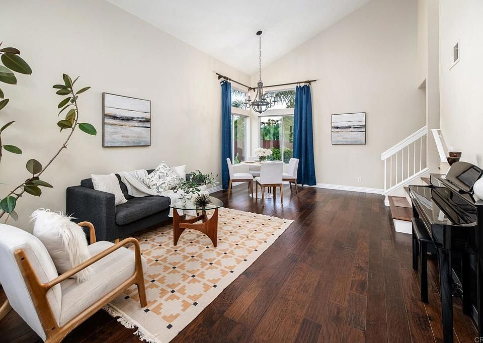 Welcome to 3362 Edgeview St, a charming single-family home nestled in the serene community of San Marcos, CA., just minutes from Bressi Ranch and beach cities. This delightful residence offers the perfect blend of comfort and modern living across 1,510 square feet of thoughtfully designed space. As you step inside, you'll be greeted by an abundance of natural light and high ceilings in the entry living space. The first floor features a great layout with multiple options for living and dining, as well as a half bathroom and laundry room. The heart of the home is the well-appointed kitchen and secondary living space, with plenty of counter and cabinet space overlooking the beautiful backyard. The private and low-maintenance backyard is a must see! It is fully fenced and backs up to open green space, making it the perfect peaceful retreat. The sounds of birds and ocean breezes greet you among the abundant lemon tree and garden boxes, where you can grow whatever your heart desires. The upstairs features three bedrooms, including a spacious primary bedroom with an ensuite bathroom and private deck. The two other bedrooms are generously sized and share a full bathroom located in the hallway. This home is centrally located on the edge of Carlsbad and south Vista, providing a perfect location to escape the coastal clouds while still enjoying ocean breezes and a comfortable climate. Conveniently located close to everything while maintaining a peaceful atmosphere, the neighborhood also features a basketball court and a playground, making it a great asset for families. Don't miss the opportunity to make this beautiful San Marcos residence your new home. Experience the perfect blend of style, comfort, and convenience at 3362 Edgeview St. Schedule a viewing today and discover all that this wonderful home has to offer!