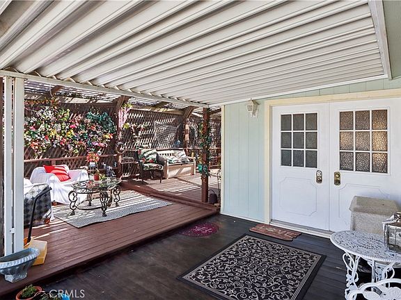 Charming 2 bedroom, 2 bath home boasting a generous 1,954 square feet of living space. The covered front patio and double door entry welcomes you into the home. Step inside to discover a spacious living room adorned with a cozy fireplace with hearth & mantel, and vaulted beam ceilings bathed in an abundance of natural light from the floor to ceiling windows that creates a warm and inviting atmosphere. An office space tucked into the living room with built-ins could be converted into another room, if desired. Large open kitchen features more light, tons of cabinet & counter space, a breakfast bar that opens to the dining area and living room featuring wood style flooring. The expansive primary bedroom is a sanctuary of comfort, complete with a substantial walk-in closet and a luxurious primary bathroom with dual sinks, vanity area, soaking tub, and separate shower. The second bath can be accessed from the hallway or from the large laundry room offering a built-in desk and cabinets, plus access to the side yard and 2-car garage with street level access. Lots of outdoor space including a fenced area for pets, shed, and a fabulous side deck that is the perfect spot for entertaining or to sip your coffee in the morning. Home sits up, so it's quiet and serene. Tons of trees on the property, including Lemon, Clementine, Blood orange, magnolia, and eucalyptus. You can also access the orchard from the backyard. Nestled within 'The Farm,' one of the most esteemed developments in the valley, this property grants access to an array of prestigious amenities. From an amphitheater to three pools, two spas, and even a serene catch-and-release fishing pond, residents enjoy a lifestyle of leisure and recreation. Sports enthusiasts will appreciate the courts and fields available, while two R.V. storage areas cater to adventure seekers. The community spirit thrives with regular activities such as farmers markets and holiday parades, fostering a sense of unity and belonging among neighbors. With its idyllic setting and exceptional features,this property promises to captivate discerning buyers