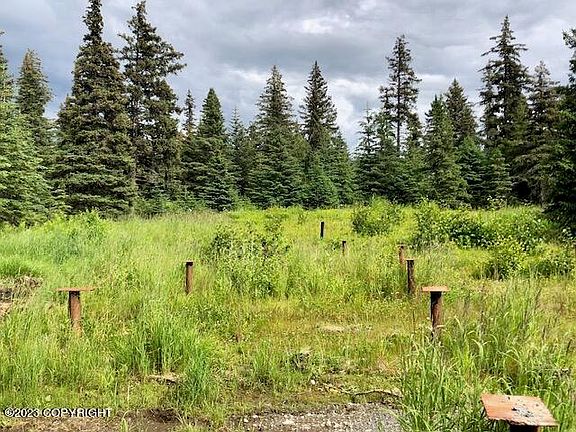 Level lot in town on borough-maintained road, electric meter for easy hookup, gravel driveway, and natural gas adjacent. Private setting surrounded by healthy trees. There are multiple steel pilings that could be used for a foundation.
