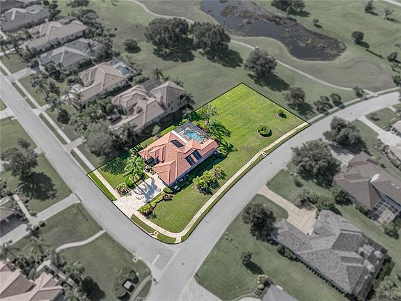 If you are searching for a peaceful yet active lifestyle, the Lake Jovita Golf and Country Club community is the perfect place for you! This captivating 3 bedroom + office, 3 bath, 3 car garage pool home is ideally set on a corner lot offering beautiful golf course views, sidewalk lined streets, mature landscaping, a paver drive, and over 3/4 of an acre of land. Step inside to the formal entertaining areas complete with a dining room, living room, sliding doors to the pool deck, and easy-to-maintain tile flooring. The heart of this home is a true delight for culinary enthusiasts, featuring granite countertops, wood cabinetry, an island with breakfast bar seating, a walk-in pantry, a built-in oven and microwave, a cooktop with a custom range hood, and updated lighting. It is centrally located with views of the expansive family room and a buffet bar that sits between the kitchen and the formal dining room for easy entertaining. Privately split away from the other bedrooms and accessed through double doors, the primary suite is a tranquil retreat at the end of a long day. Enjoy luxury vinyl plank flooring, 2 large walk-in closets and a spa-like ensuite bathroom that has dual sinks, a walk-in shower, and a separate soaking tub. Bedrooms 2 + 3 are on the opposite side of the home and share a full bathroom in-between. The office space is completely set away from all bedrooms, it has vaulted ceilings and is near the 3rd full bathroom and pool access! The oversized laundry room, the 3 car garage, and a whole house generator add additional convenience to this one of a kind property. Take in the views from the relaxing and beautifully designed paver pool deck. You can soak up the Florida sunshine by this sparkling pool, or relax in your spacious backyard with stunning views of the surrounding landscape. Whether you're hosting a BBQ or enjoying quiet evenings under the stars, the outdoor space provides an ideal setting to unwind. Residents of Lake Jovita enjoy an amenity experience like no other. They have a 24/7 guarded gate, a playground, walking trails, dog park, and pickleball courts. For a separate fee, even more amenities are offered at the Golf and Country Club including two championship 18-hole golf courses, a clubhouse with a restaurant, tennis courts, fitness center, and more! Do not miss your chance to change not only your home, but your lifestyle. Call us today!
