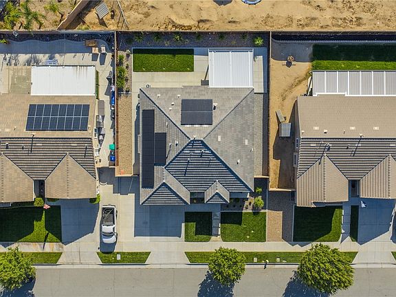 This beautifully appointed, EXTREMELY well-maintained, and HIGHLY upgraded single story ($31,000 in upgrades PLUS a 22-panel paid-off solar system (25-year warranty with EV/Spa capacity) home is loaded with curb appeal and nestled in the highly sought-after McSweeny Farms community in Southern Hemet. Ideally located just minutes from Diamond Valley Lake (great for the fisherman)/Valley-Wide Community Park(great for the sports enthusiast)/Aquatic Center and Western Science Center School/Museum (Home of the Pacific Mastodon) and the 215 freeway, it offers both commuter convenience and a peaceful retreat. This highly sought after floorplan features a sizable, welcoming sun-filled living room before flowing into an expansive great room with soaring ceilings, a cozy fireplace, and an impressive granite-island kitchen with rich chestnut cabinetry, modern appliances, and abundant storage. Spacious, airy bedrooms line the hallway, each designed for comfort and flexibility.