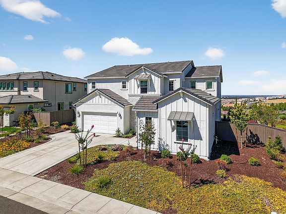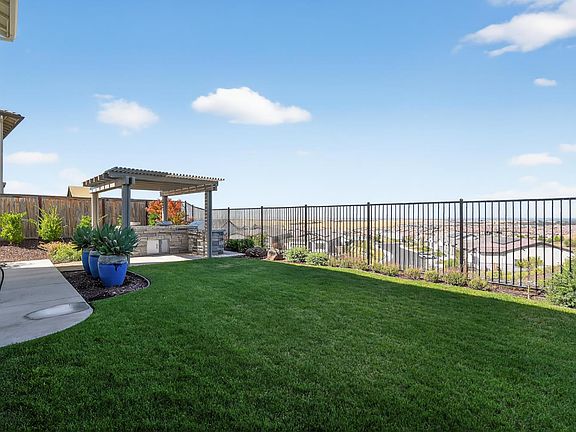 This is a beautiful home with excellent quality and style. When you walk in, you immediately feel its elegance. The design allows for an easy transition from inside to outside, starting at the front court and entry, and leading to a covered patio and open green space with stunning views of the Sacramento Valley. The home features high ceilings, large sliding doors, a living room with a tall fireplace, and a modern kitchen with top-quality appliances, quartz countertops, beautiful cabinets, and a walk-in pantry. It offers four bedroom suites, a den/library that could serve as a fifth bedroom with outdoor access, and a spacious upstairs loft. The main bedroom includes two large walk-in closets, a luxurious bathroom, and a private covered balcony. The backyard feels like a resort, with a covered sitting area and fireplace, an outdoor kitchen with BBQ and granite counters, solar, and large grassy areas for play. Located in the desirable Russell Ranch community at White Rock Springs in Folsom, the home is close to top-rated schools, premier shopping at the Palladio Shopping Center, Broadstone Plaza, and Folsom Premium Outlets.