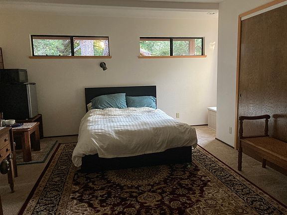 The room is spacious, nicely furnished, an efficiency with mini-fridge, microwave, coffeemaker. Private porch, quiet & peaceful. Bathtub/full bath. Carport parking. No smoking, no pets. Good buses to town (#s 1 & 2) right down at the corner, as needed. Ideal for one person who values a clean, harmonious living space.