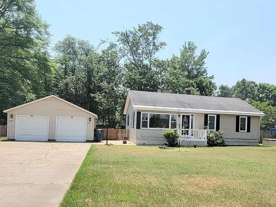 Must see updated 3 bedroom ranch on dead end street! This home features a large living room, beautiful kitchen with newer appliances including brand new microwave, 3 bedrooms, a full bath, and laundry room with cabinets. Nice deck overlooking large fenced in yard with garden area. There is a 2 stall garage, and additional shed and barn for your storage needs. BRAND NEW furnace and AC in March this year and electric also recently updated and generator hookup installed. Underground sprinkling on separate well. Sale includes kitchen appliances. Open house Sunday 6/23 12:30-1:30. Showings to begin after Noon on Saturday 6/22.