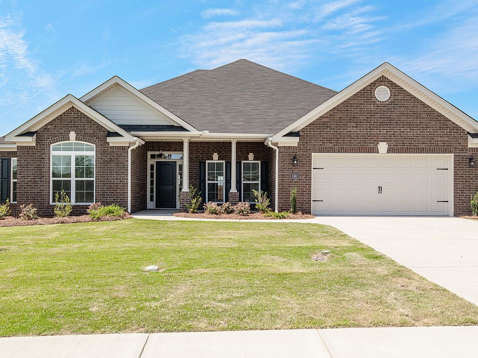 Welcome to The Estates at Southampton, Richmond County's ONLY all-brick ranch-style new home community! The Castlegate 11 by Bill Beazley Homes is one of our most sought-after floor plans, and once you step inside, you'll see why! Grand Entrance - Walk into a wide, welcoming foyer with evacore click hardwood that leads to a spacious great room with high ceilings, centered Opti-Flame fireplace, perfect for cozy evenings. Dream Kitchen - Overlooking the great room, the gourmet kitchen boasts custom stained cabinets, granite countertops, and GE stainless steel appliances—a must-see for entertainers and home chefs alike! Ultimate Owner's Retreat - The huge primary suite features a private sitting area with a fireplace, creating the perfect space to unwind. The primary bath includes a walk-in shower and bench in shower and garden tub, dual vanity, and a massive walk-in closet! Outdoor Living Perfection - Enjoy both covered front and back porches; large flat backyard and a privacy-fenced backyard with a full irrigation system—perfect for outdoor gatherings or peaceful relaxation. Smart & Secure - Includes an Interlogix Smart Home Security System, CAT6/RG6 wiring, and 2'' faux wood blinds throughout for added comfort and convenience. Prime Location- Just minutes from Fort Gordon, Plant Vogtle, Starbucks, I-520, shopping, dining, and Diamond Lakes Regional Park, featuring tennis courts, walking trails, a library, fishing, and more! 50-dollar annual membership for inside activities offering both convenience and tranquility.