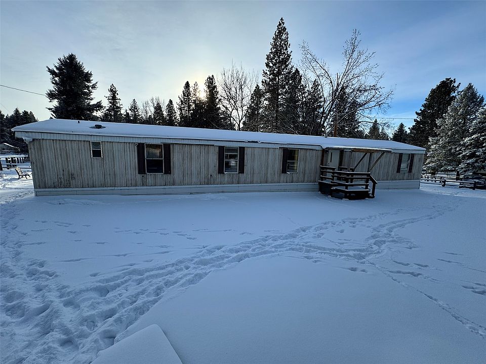 2005 4 Bedroom single wide. In great condition with newer flooring, faucets, walk in closet, lots of storage, covered decks. Includes a Miller storage shed with shelving and a loft on a beautiful lease lot out of town that is nice and quiet manicured lawn. Park Lot is a 55 and over. Home can be moved to the new buyer's location. 2nd home on the east side- So affordable, a must see. Call Dave Salomon at 406-270-5753, or your real estate professional.