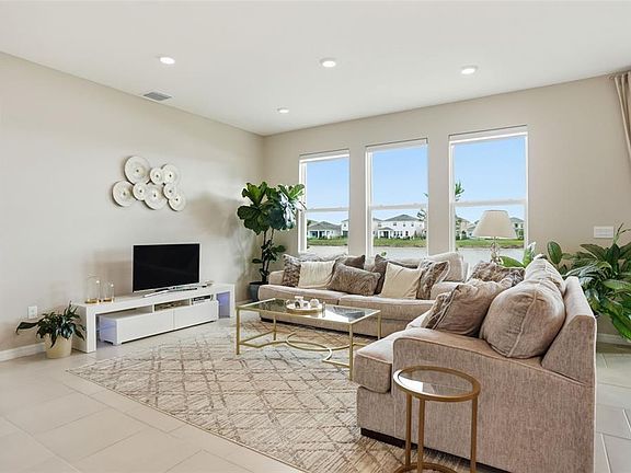 Barely lived-in and completed in 2024, this Avalon Park Wesley Chapel home pairs a bright, open layout with a waterfront setting full of life and movement. The lot is wider than most, offering breathing room between neighbors while framing tranquil views of the pond—where ducks, eagles, and sandhill cranes drift through at sunrise and dusk. Inside, sunlight pours through the living, dining, and kitchen areas, creating a calm, cohesive atmosphere. The kitchen anchors the space with white shaker cabinetry, custom hardware, exotic granite counters, and a neutral earth-toned tile floor laid in a staggered pattern. A full pantry and dedicated coffee bar make the layout both stylish and functional. A smart Samsung fridge, a whole-home water softener and filtration system, and a matching washer and dryer add everyday ease. The first floor includes a full bedroom and bath—ideal for guests or multi-generational living—along with a flexible den that works beautifully as an office or playroom. Upstairs, the primary suite captures sweeping water views that glow under the moonlight, while the large family room provides a natural gathering space for movies or downtime. Life in Avalon Park Wesley Chapel centers around connection and community. Built around a “Live, Learn, Work, Play” concept, Downtown Avalon Park is actively expanding—already home to restaurants, ice cream shops, and year-round events, with more retail and office space underway. Each July 4th, fireworks light up the sky over the lake; on weekends, neighbors meet for food trucks at the clubhouse or volleyball near the park. Families enjoy access to excellent nearby schools, including New River Elementary and Wesley Chapel High—plus new charter and high schools under construction. Nestled just off SR-54 with quick access to I-75, this home is minutes from The Shops at Wiregrass, Tampa Premium Outlets, The Grove, and The Krate. It’s the perfect mix of peaceful and connected—where natural light, thoughtful design, and everyday convenience all come together in one beautiful place to call home.