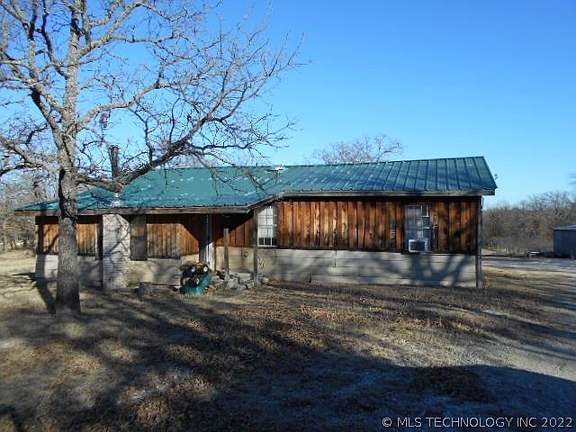 15 Acres with pond. Home has insulated windows, door, wood stove, wall heaters and window air conditioners. ceiling fans, tile in kitchen and bath. Nice deck on back. Electric range, dishwasher, vent a hood, refrigerator. Inside utility room with storage. Sold as is. Owner still doing a few improvements. There is a separate mobile home hook up on property with own sowc meter and septic. Also a rv spot. Metal roof installed in 2017. Yellow barn goes with property. Follow the fence from barn over to post with red on top and the property goes east there on back to the back part of the property. About 5 acres on front and ten on back. There is creek and pond on the back. Surface rights only.