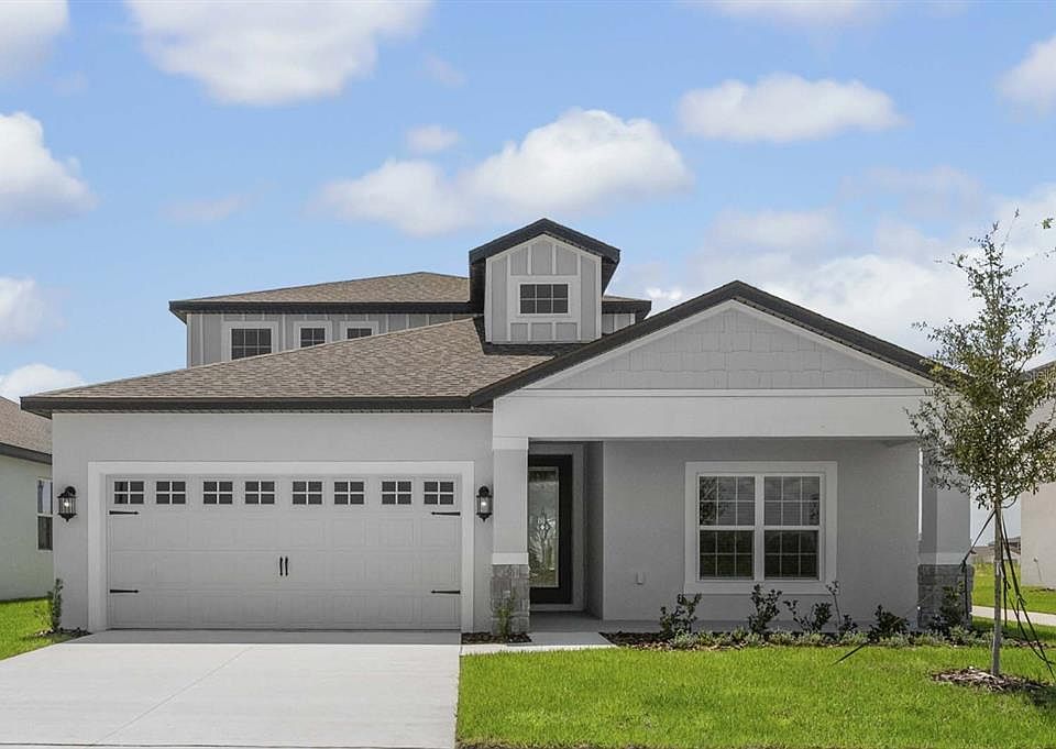 Pre-Construction. To be built. Welcome to the Myrtle at Gum Lake Preserve — a stunning two-story, four-bedroom, two-and-a-half-bath home designed for comfort, style, and modern living. Perfectly positioned near the lake and just a short distance from the community boat ramp, this home offers no rear neighbors and breathtaking sunset views from the backyard — the ideal setting for peaceful evenings outdoors. Inside, you’ll find a bright and open layout that effortlessly blends the kitchen, dining, and family room, creating the perfect space for entertaining or relaxing. The chef-ready kitchen showcases quartz countertops, a subway tile backsplash, white cabinetry with matte black hardware, stainless steel appliances, and a spacious pantry for storage. The luxurious downstairs master retreat features a serene atmosphere with space for a king-size bed, a dual-sink vanity, and a linen closet for extra convenience. Upstairs, three additional bedrooms each include walk-in closets, along with a full bathroom featuring a two-sink vanity. Smart home and energy-efficient features — such as a programmable thermostat and double-pane windows — provide comfort and savings year-round. Professional front yard landscaping enhances the home’s curb appeal. Located in the scenic lakeside community of Gum Lake Preserve, residents enjoy access to a boat ramp, walking trails, fishing pier, playground, picnic areas, a community gazebo, and nearby shopping and dining. With quick access to I-4, both Orlando and Tampa are within easy reach. Don’t miss the opportunity to own this beautiful lakeside home with stunning sunset views — schedule your private tour today!