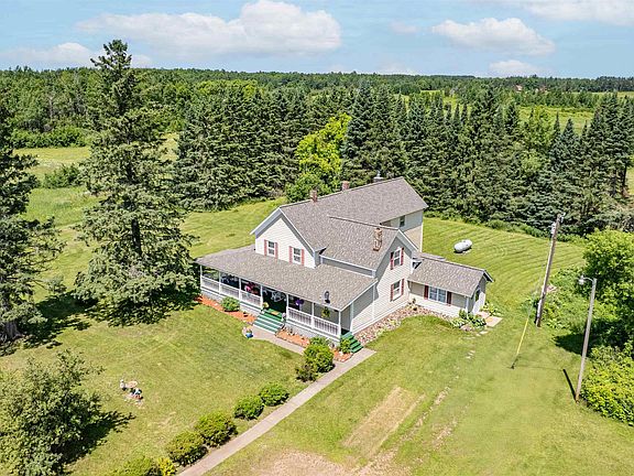 Step into a piece of Minnesota history with this one-of-a-kind rural estate set on 80 acres of tillable land just outside Barnum. Built around the Civil War era using white pine timbers - this spacious 5-bedroom, 2-bath home offers rustic charm and lots of opportunity with space to make it your dream homestead. The home features over 3,100 finished square feet, a new roof (2023), new gutters, and seven new garage doors. Inside, you’ll find a front foyer that opens to two den/study spaces and a sitting room showcasing original trophy and bookcases from St. Olaf College. The spacious living room offers a cozy wood-burning fireplace, while the kitchen features tile and laminate flooring, a wood-burning stove, and spacious dining space. Upstairs includes five bedrooms and a full bath with double mirrors, including a primary suite with knotty pine walls, two walk-in closets, and its own private balcony. A main-level laundry/mudroom with a new back door adds convenience to everyday living. Outdoors, relax on the large front deck with its peaceful sitting area or explore the property’s multiple outbuildings - including a granary that was once a summer kitchen and is now a fun bar space, plus an additional shed for storage or creative use. The 15-stall garage offers excellent concrete floors, floor drains, and plenty of room for vehicles, tools, or hobbies. With raspberry bushes, four hay fields, a long driveway, and frequent wildlife sightings, this rare property combines privacy, natural beauty, and rich historical character - just minutes from I-35 in Barnum School District #91.