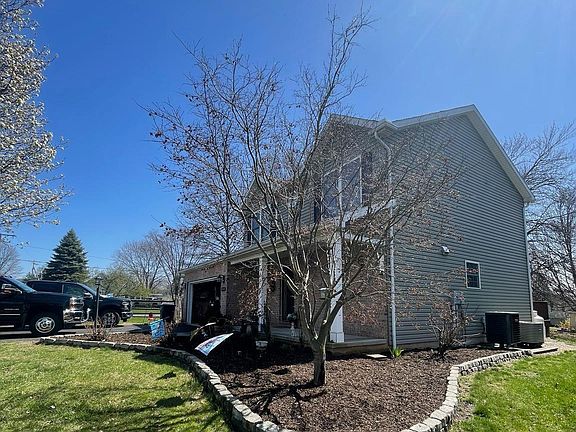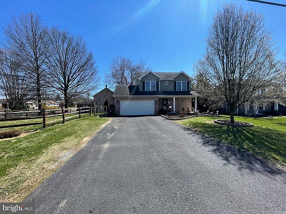This 2007 custom house is distinguished by its open first floor which is extended by a 27 'x 16' deck making the first floor an expansive living space! Oak hardwood floors throughout the first floor, including the kitchen which features a tile backsplash, a newer black stainless appliance suite and a five foot island. The hickory cabinets throughout the house were made by a local custom cabinet maker, creating cohesion throughout the home. A private stamped concrete patio perfect for a fire pit with friends has a cordinating stamped walkway from the front of the house. Split rail fenced in yard and a shed offer additional outdoor functionality and convenience. The brick entrance with an full light storm door opens up a bright, airy foyer with a two-story ceiling. Master suite is located upstairs with a very convenient laundry room also located upstairs. The basement was finished in approximately 2010 and remains like new with berber carpet, an upgraded drop ceiling, a freestanding, cast iron propane stove as an additional heat source and what appears to be wiring set up for a surround sound theater system (seller is unaware of wire functionality). There are two heat pumps zoned for the first and second floor which is an additional distinguishing feature of this home. The seller is offering a $2000 carpet allowance to help replace the upstairs carpet and is having the deck and patio professionally cleaned. All appliance convey including the washer/dryer. Come see this beautiful modern home in a desirable neighborhood!