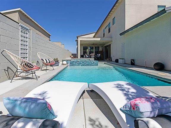 2.25% VA ASSUMABLE AVAILABLE! Welcome to 3364 Ponicelli Lane, an exquisite two-story, modern home in Henderson’s premier Inspirada community. This turnkey residence perfectly combines luxury and functionality, featuring 3 bedrooms upstairs, a guest suite on the main level, and open-concept living that flows effortlessly into a lounge or office space. The home’s thoughtful design continues with an oversized loft, a primary suite boasting a custom spa shower, floating cabinets, and a fully upgraded walk-in closet. Step outside to your private courtyard, pool, and spa—ideal for entertaining or relaxing while taking in stunning views of the Las Vegas Strip and Red Rock Canyon. With a 3-car tandem garage and access to Inspirada’s award-winning parks, trails, and top-rated schools, this home offers a lifestyle of elegance and convenience in one of Henderson’s most desirable neighborhoods.