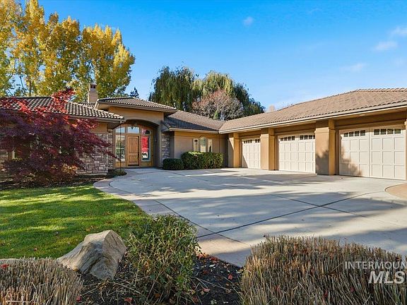 Welcome to this stunning 4 bed/3bath residence, perfectly nestled in the serene privacy of the coveted Bown Crossing neighborhood. This luxurious, single-level home offers an open floor plan with split bedrooms and extensive windows throughout. It boasts a gourmet chef’s kitchen, featuring a spacious pantry, sleek slab granite countertops, and a six-burner gas cooktop. The primary suite is a true retreat, complete with a luxurious soaker tub, a full-tile shower, walk-in closet, plus direct access to a private patio. The home features classic design elements like 10-foot ceilings, elegant plantation shutters, natural wood floors, and a cozy stone fireplace with built-ins on both sides. Additional highlights include an oversized laundry room, expansive guest rooms, new interior paint, new carpet, and abundant storage throughout. The oversized three-car garage offers plenty of extra space for all your needs. Outside, you’ll find a secluded, park-like yard with no rear neighbors, a covered patio, and a charming rock fountain, making it perfect for entertaining. All of this is walking distance to local shops, eateries, a library, the Boise River/Greenbelt, and it’s just minutes from downtown and the airport.