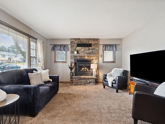 So great to come home to! Entering this home, you will love the cozy living room boasting a beautiful fireplace and a larger bay window letting natural light flood the space. Connected is the eat-in kitchen that offers access to the rear deck. The kitchen has ample cabinetry and prep space, as well as stainless steel appliances. Also on the main floor you will find three great-sized bedrooms and a full bathroom to share. The living space continues in the lower level as there is an expansive family room area with brand new carpet, a 4th non-conforming bedroom, an additional bathroom and a laundry room. The exterior spaces are just as great, featuring a detached two-stall garage and a large private backyard with a spacious deck - perfect for entertaining. With a new roof and gutters, this home is conveniently located and has so much to offer! Don't wait on this one! Schedule your tour today!
