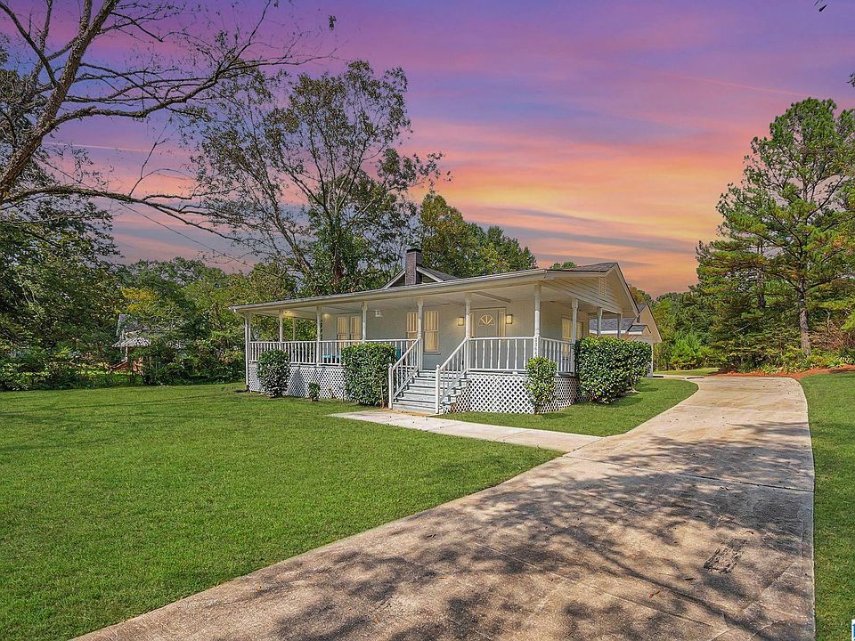 Welcome home to your own private retreat on 1 acre, where modern meets country charm. From the inviting front porch to the peaceful back open patio, this home feels warm and welcoming from the start. Inside, the living room features a classic brick fireplace and opens to a bright sunroom that’s perfect for morning coffee. The kitchen has been beautifully redone with Quartz countertops, stainless appliances & new cabinetry, opening into a dining area that works just as well for weeknight dinners as it does for entertaining. The main-level master is tucked away for privacy and includes a walk-in closet & ensuite with double vanities, a soaking tub, & separate shower. 2 additional bedrooms share an updated full bath, giving you space for family, guests, or a home office. French doors open to a deck overlooking the spacious yard, perfect for families or pets. With a NEW Roof, HVAC, and a Tankless water heater, this home is move in ready and all just minutes from shopping & dining!!