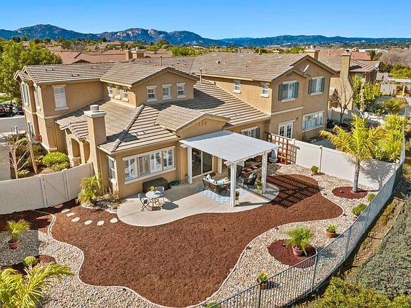 Centrally Located End-Unit Townhome, Spectacular Mountain Views, and an Expansive Fenced Backyard! Discover Auberry Place's gated community charm with this 1532 sqft 2BR, 2BA + LOFT home complete with downstairs bedrooms, baths, and laundry. Unlock the potential of an oversized bonus loft upstairs, perfect for a 3rd bedroom conversion or expansive home office. Step into serenity with an inviting foyer, beautiful wood tone and water resistant vinyl tile flooring, plantation shutters, and neutral tones illuminated by abundant natural light. Unwind in the spacious living room, nestled by a cozy fireplace and delight in scenic views from every window. Indulge your culinary passions in the open concept kitchen featuring rich wood cabinetry, sleek black appliances and stylish countertops. With a gas stove, recessed lighting, and an adjacent dining area, every meal prep is effortless and enjoyable. The dining area, seamlessly connected to the backyard, offers the perfect setting for gatherings and casual dinners, providing an indoor-outdoor flow for enjoyable entertaining. Unparalleled in entertainment options and arguably one of the premier outdoor spaces in the area, the fenced-in backyard captivates with a sprawling patio, custom pergola, immaculate hardscaping, and awe-inspiring unobstructed views of the picturesque snow-capped mountains and the occasional drifting hot air balloon. After playing the perfect host, the oversized primary bedroom enchants with soaring vaulted ceilings, a spacious walk-in closet, and an attached bath featuring a dual sink vanity. Another generously sized bedroom boasts its own dedicated closet, while the full guest bathroom offers a convenient shower/tub combo and storage vanity. Additional amenities include an attached two-car garage, access to community pool/spa and playground with ample nearby guest parking. Close proximity to shopping, restaurants, schools, major highways (SR-79, I-15), medical facilities, wineries, Starbucks, golf courses and more! Don’t miss the opportunity to tour this remarkable property and schedule your viewing today!