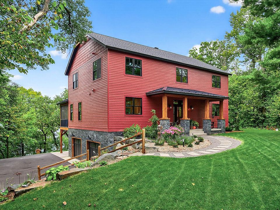 This custom lake-front home is situated on a beautifully wooded, private lot conveniently located between Cambridge and Princeton. Every INCH of this home has been carefully crafted and cared for since it was built in 2020. The stunning oak hardwood floors were recycled from the very trees cut down on the property, the beautiful boulders surrounding the home were imported from quarries in Wisconsin, and the 3000 square foot layout inside was designed with hosting and gathering at the top of mind.