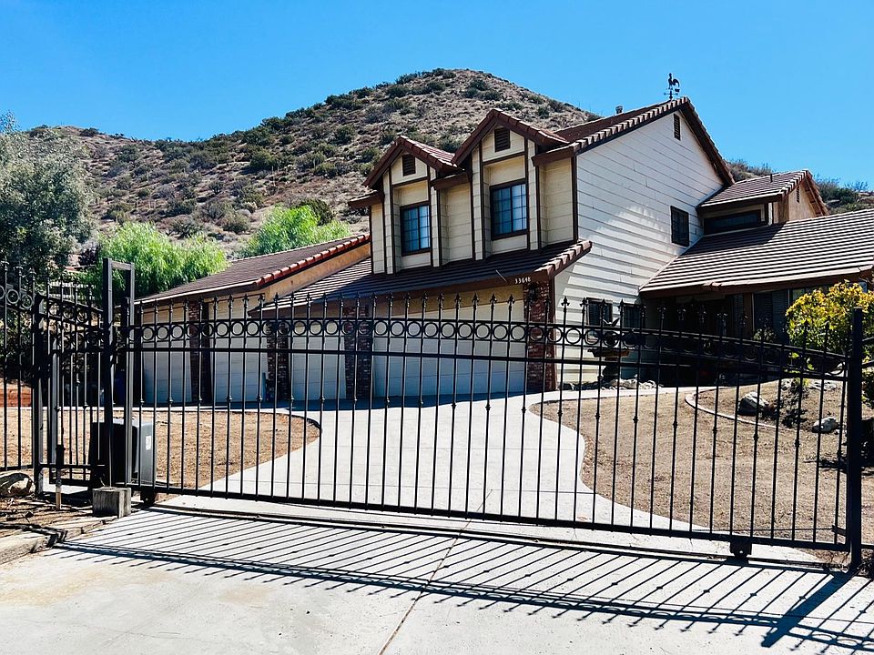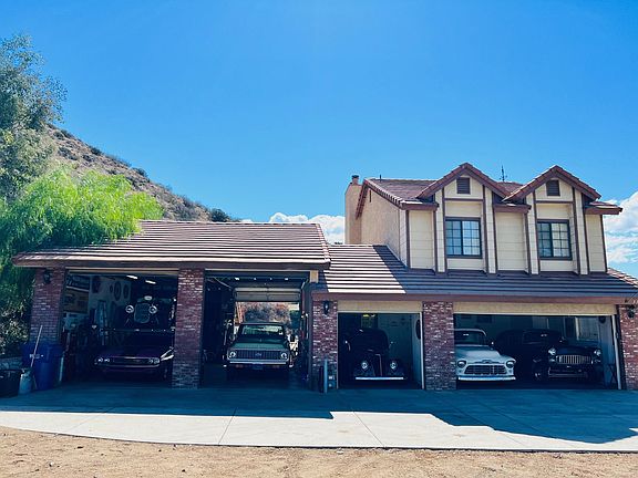 Ultra Rare Gated Acton home with 6 car garage and work shop, set into your formal entry with double oak doors, step down into your living rooms and formal dining with wood floors, cooks kitchen with granite counter and pantry, family room with fireplace, entertainers backyard with massive patio, 3 fans, Wow a Acre of land, master bedroom with retreat, two additional large bedrooms, garage has a boat door, there are storage sheds, views.