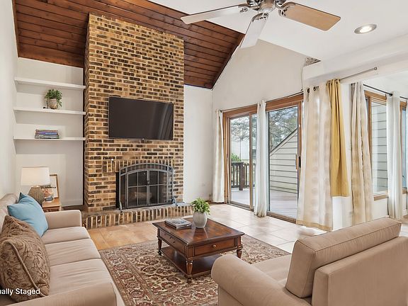 This charming condo is all about comfort, convenience, and a VIEW YOU'LL LOVE! Enjoy the bright living room with vaulted ceilings, a cozy FLOOR-TO-CEILING BRICK FIREPLACE, and glass sliders that open to a spacious DECK with GORGEOUS POND VIEWS! The eat-in kitchen features GRANITE COUNTERTOPS & ample cabinetry, and durable PORCELAIN TILE flooring runs throughout the main level. Upstairs, the primary bedroom comes with a versatile sitting room or den-perfect for work, hobbies, or relaxation. FIRST-FLOOR LAUNDRY makes life easier, and with a POOL, CLUBHOUSE, and EXERCISE FACILITY in the community, you've got everything you need right at your fingertips. Let's not forget the closeness to Route 41 and easy interstate access! Don't wait-- This one won't last!