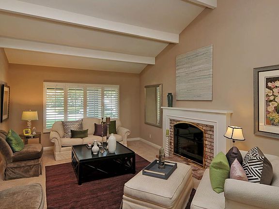 Classic and timeless in sought-after Waverly Park! Large corner lot with mature shade trees, level lawn, and wide brick walkway to the front entrance. Spacious living room with new carpet, cathedral ceiling, exposed beams, plantation shutters, and glass enclosed wood-burning fireplace. Remodeled kitchen with richly hued to-the-ceiling cabinetry topped in granite slab, center island, walk-in-pantry, separate breakfast area with French doors to the rear yard. Fully open to the kitchen, the family room features hardwood floors, wood-burning fireplace, surround speakers and French doors to the yard. Master bedroom suite with cathedral ceiling, new carpeting, plantation shutters, customized walk-in closet and luxurious en suite bath. Large rear yard with Trex-style deck, spacious brick terrace, and raised vegetable beds. Wonderful location with easy access to shopping and dining, Cooper Park, El Camino Hospital and commute routes. Excellent local schools!