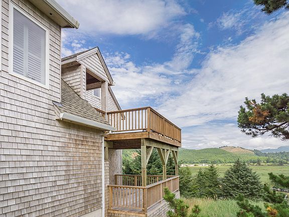 Rare opportunity for hilltop home in Nestucca Ridge. Architecturally designed home with panoramic views of Haystack Rock to the West & Nestucca River Valley to the East. Featuring soaring stone fireplace, hardwood floors, ceramic stone flooring & Cathedral ceilings in living room & kitchen. 2 decks, spacious bonus room for office/sleeping area, plus 3rd story loft. Approx 10 min walk to the beach!