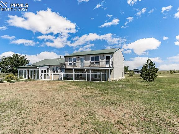 PURCHASE ESTABLISHED!!!! This Gorgeous Tri-Level, built in 2003, has everything and more that you are looking for in a well established 40 Acre Homestead. Over 500 established Trees and located 27 miles from edge of Colorado Springs. Home is well insulated with 2x6 construction, stucco siding and metal Roof. One Owner and PRIDE IN Craftsmanship, let's look at some features: ENTRANCE: Passive solar sunroom, with built in planters, ceiling fans and 2 slider doors for cross breeze MAIN FLOOR: Open Concept with Vaulted Ceilings, wood flooring, Grand Room with living Space, formal dining room (walks out to all season patio), custom kitchen, breakfast bar, 3 sided propane fireplace, Guest Bedroom, Office with built ins and Murphy Bed, mudroom walks out to garage UPPER LEVEL: 2nd walk out bedroom, laundry room, guest bath with HUGE walk-in shower, Master Bedroom sitting area, propane fireplace, built ins, walk in closet, ensuite bath with double custom vanity, corner jetted soaking tub, electric fireplace and walks out to deck FINISHED LOWER LEVEL: Entertaining Room-Custom Mahogany Wet Bar, gorgeous drop lighting, electric fireplace, built in shelving, dart board competition area and a 1/2 bath w/ urinal! crawl spaces and utility Room SECOND HOME: 1969 Single Wide move in ready 2 bedroom Mother in Law Suite (or potential rental) separate septic, electrical service, and tucked back in on the property behind main home. OUTBUILDINGS: Mechanic's Dream SHOP built from old tires is well insulated offering a wood burning fireplace, concrete, windows, one bay grease pit, 220 amp service, building attached to SHOP offers an additional 3 bay garage and storage. Single Wide used as a storage shed Odd and Ends: Brand new septic tank and risers, domestic well, Zoned A-35, raised garden beds, tilled garden area, amazing views, fenced in dog run, south facing deck, and 2 car Attached Garage, ALL furniture in home is available to stay...All Appliances will Stay!! ACT FAST