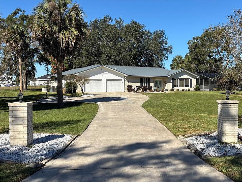 Spacious Leesburg home with Resort-Style Pool and Dual Master Suites, with no HOA! Discover the perfect blend of comfort and convenience in this beautiful 3-bedroom, 3.5-bath home offering over 3,000 sq ft of living space on nearly one acre of landscaped property. Drive up the expansive driveway with room for ample parking and a oversized garage for your toys. Built in 1974 and thoughtfully updated over the years, this home combines timeless character with modern upgrades. Step inside to find two master bedrooms with full bathrooms in-suite, ideal for multi-generational living. The open and versatile floor plan provides plenty of space for relaxation and entertaining. The kitchen has newer cabinetry and quartz counter tops, stainless steel appliances and flows seamlessly with an open floor plan, an entertainment area with a stone wood burning fireplace and wet bar and then relax in the sunken family living room/area! A serviceable wet bar and half bath and then sliders leading to the home’s standout feature — a massive 3,660+ sq ft screened enclosure that surrounds an impressive 800 sq ft pool. It’s the ultimate setting for Florida living, with ample space for dining, lounging, entertaining and year-round enjoyment! Practical updates include a durable metal roof, newer drain-field, and a whole-house generator, providing peace of mind and energy efficiency. The expansive yard offers endless possibilities for gardening, play, or simply enjoying the peaceful surroundings. Located just minutes from the Leesburg Mall, Lake Square shopping, and a wide selection of popular restaurants, this home offers a serene retreat with easy access to everything you need. Whether you’re looking for space, style, or a home designed for entertaining — this Leesburg gem truly has it all.