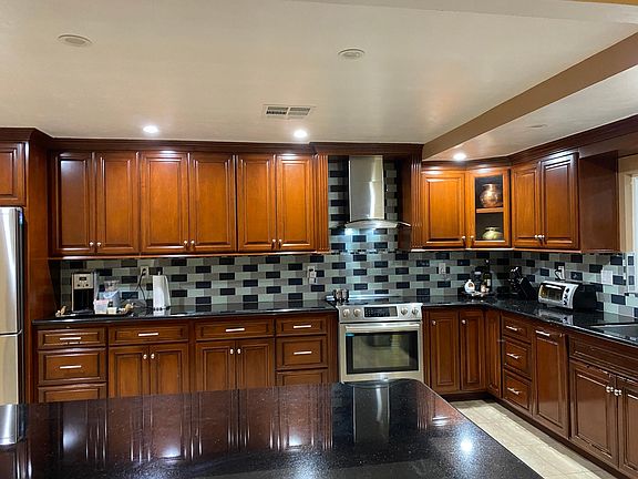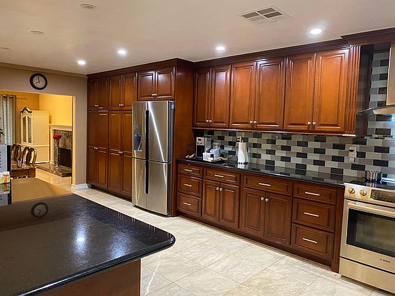 Beautifully upgraded home with tile flooring and an open floor plan in a great central location. 4 bedrooms, 2 baths, living room, family room with fireplace, modern open kitchen with stainless steel appliances - Refrigerator, Glass Top electric range with oven, Dishwasher. Kitchen has granite counters, recessed lighting. This house has 2 car attached garage, and a beautiful concrete backyard with fruit trees. Washer, dryer, A/C and Heater centralized. Nice neighborhood, quick access to freeway and shopping. Tenant pays for utilities and garden maintenance. Tenant to keep and maintain Renters Insurance