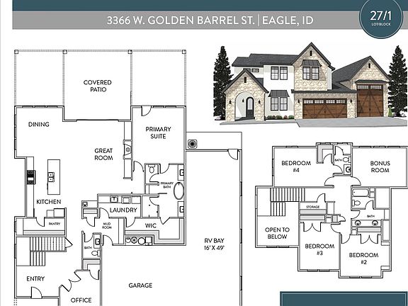 Located in the Whitehurst community & built by Integrity Homes, this two-story home offers a functional layout with 4 beds + office + spacious bonus room. The RV garage is 49' deep, providing ample storage for vehicles, toys & equipment. The oversized covered back patio stretches across the entire back of home, extending the living space outdoors. Inside, the primary suite includes a soaker tub, dual vanities, walk-in tile shower & generous closet with direct access to the laundry room. The main entry opens to the second-story ceiling, creating an impressive welcome with natural light from the home’s many windows. Upstairs, one of the bedrooms serves as a private ensuite with its own bathroom, offering flexibility for guests or multi-generational living. This home is upgraded & beautiful – truly a must-see. *Photos Similar – home under construction.
