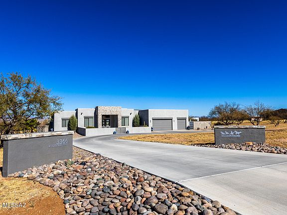 Escape to the luxury of this modern custom home on 3 private acres in the upscale Red Hawk at J-Six Ranch Subdivision 30 minutes east of Tucson & the Airport. Relax in the heated salt water pool, sit back in the 6 person spa, enjoy the sunset from the roof top deck or settle in and enjoy the view of the Rincon Mountains from the living room window wall with 12' ceilings.This one of a kind 3335 sf 3 bedroom 3 bath home has a designated office with built in desk system & Murphy Bed for extra guests & includes a fully enclosed heated & cooled AZ Room with 8' tall sliding glass doors that open to the back yard & pool area. There is an oversized 3 car garage w/ cabinets & a mini split + covered RV Parking with electric hookup. To top it all off this special home has an owned Solar System.
