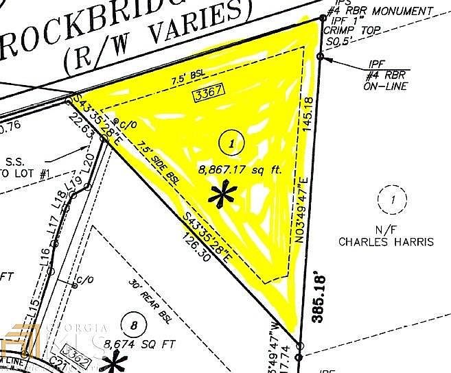 Level lot in nice established Avondale Estates neighborhood. This is Lot 1 of Rammel Oaks subdivision, formerly 3368 Rammel Way, now 3367 Rockbridge Road. The lot has access from Rockbridge with approved sewer permit from DeKalb County. Sanitary sewer easement and sewer lines already in place to the lot from within the subdivision, other utilities within very close proximity from Rockbridge. HOA approved driveway and access from Rockbridge Road. Retaining wall has already been removed and re-finished to accommodate driveway entry. Annual HOA only $500. Survey available.