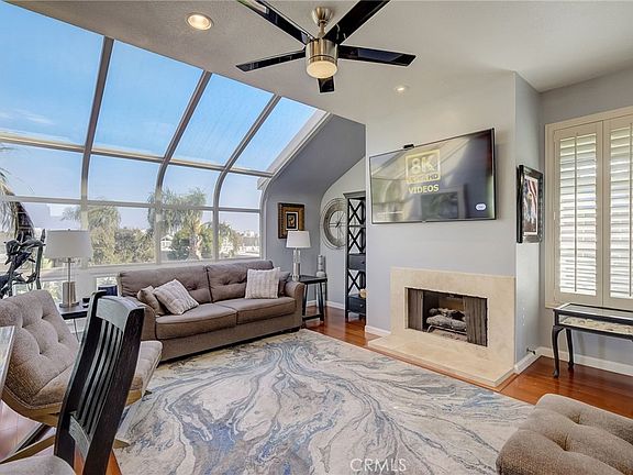 Located in the desirable Huntington Harbour SeaBridge community, this upgraded End Unit townhome is a true gem! It showcases 2 bedrooms and 3 bathrooms along with a 2-car attached garage. The den/office can easily be converted into a third bedroom and offers beautiful atrium windows with custom shades and a huge storage/closet area. The array of improvements include granite countertops in the bathrooms and w/d room, ceiling fans, Toto Washlet bidet seats, designer dining room chandelier, wine fridge, new 6-panel doors, Wizard retractable door screens, ceiling fans, newer appliances, whole house water filter, keyless entry locks, and most notably, all new dual-pane windows that flood the space with natural light and amazing ocean breezes! The garage floor has been epoxy finished and has overheard hanging racks and Air Conditioning has been installed. Outside, you'll find a well-designed lighting system by Jellyfish that enhances the aesthetics and can be controlled by your phone, while inside, you can enjoy a peek-a-boo view of the Harbour. The spacious primary suite features a stunning travertine fireplace, a generous walk-in closet, and a private bathroom complete with dual sinks and a large travertine walk-in shower. The 2nd bedroom also boasts a full private bathroom with a tub/shower and it conveniently opens up to a spacious courtyard patio perfect for hosting BBQs and entertaining guests. For added convenience there is an inside laundry room equipped with cabinets for storage and also a central vacuum system. The kitchen boasts granite countertops, elegant white cabinets, a 4-burner range, built-in microwave, and refrigerator. It seamlessly opens up to the light and bright living room and dining room, which offers a charming deck. The living room itself is warm and inviting, featuring a fireplace and atrium windows with custom shades as well that provide a delightful ambiance. In addition, throughout the home, you'll appreciate the beautiful hardwood floors and travertine accents. The complex itself is beautifully maintained, with grass areas and abundant trees and flowers, creating a serene atmosphere. Additionally, the complex is gated, ensuring security and peace of mind. Plus, its convenient location near beaches, parks, shopping, and excellent schools make it an ideal place to call home.