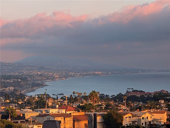 Breathtaking Ocean and City Light views in this highly sought after area of Dana Point.  One of only 8 units, this private community provides the complete Southern California coastal lifestyle!  You enter the home from the front courtyard through the wide Dutch door to a light and spacious living space with soaring ceilings, Italian crafted ceramic flooring, and designer finishes throughout. The main focal point of the living room is a horizontal fire and ice fireplace with sliding glass doors, opening to an inviting patio to extend your living space outdoors. The Italian inspired gourmet kitchen features a Reverse Osmosis under sink water filtration system, trendy two-toned cabinets, patterned tile backsplash, quartzite counters, Farm sink, double ovens, custom vent hood, and plenty of storage space! This 2 bedroom, 2 bath, home also offers a huge, oversized bonus room which includes a wet bar and another spacious deck! The main floor primary bedroom showcases a walk-in closet and an upgraded spa bathroom with high-end tile and frameless glass enclosed shower and a rain shower head. The large second bedroom with double closets is located upstairs across from the bonus room with ensuite jack and jill bathroom. Many of the home furnishings are available for purchase. Don't wait on this wonderful opportunity to make this your home!!