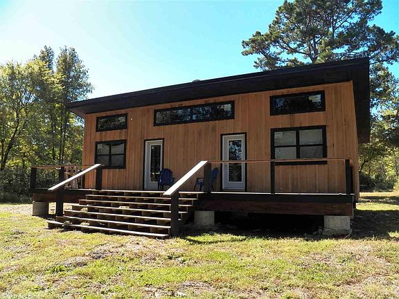 40x16 newly built cabin & you can decide how you want to finish it. Inside features 2x6 construction, 2 bed/1 bath w/ an open kitchen/living area, Norwegian stove inside, & a 40x10 cedar deck. Cement Pier foundation w/ lam beams. City water is right beside the cabin and electric is too w/ hookups for your camper or RV until the cabin is finished. With a little clearing of some trees you could have a fantastic mountain view. Creek on the NE portion of the land. Minerals do not convey. See Ag. Remarks.